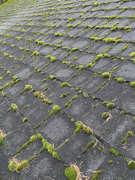 Gentle removal of moss and debris, application of roof soft wash treatment